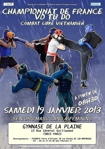 La prochaine édition du championnat de France Vo Tu Do masculin et féminin senior individuel se déroulera au gymnase de la Plaine, 13, rue du Général Guillaumat 75015 Paris, le samedi 19 janvier 2013.