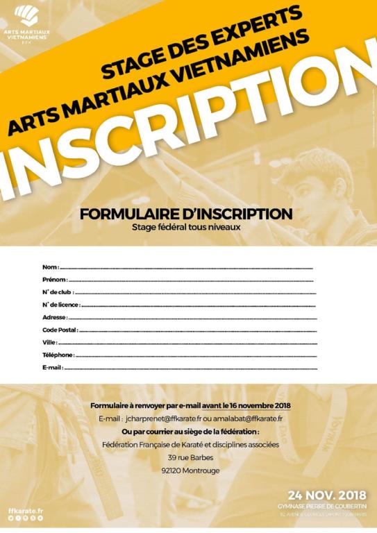 Inscription par retour du formulaire avant le 16 novembre 2018.