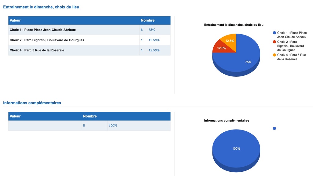 Bonjour je vous fais part des résultats de l’enquête portant sur la reprise des entrainements en extérieur le dimanche après-midi
